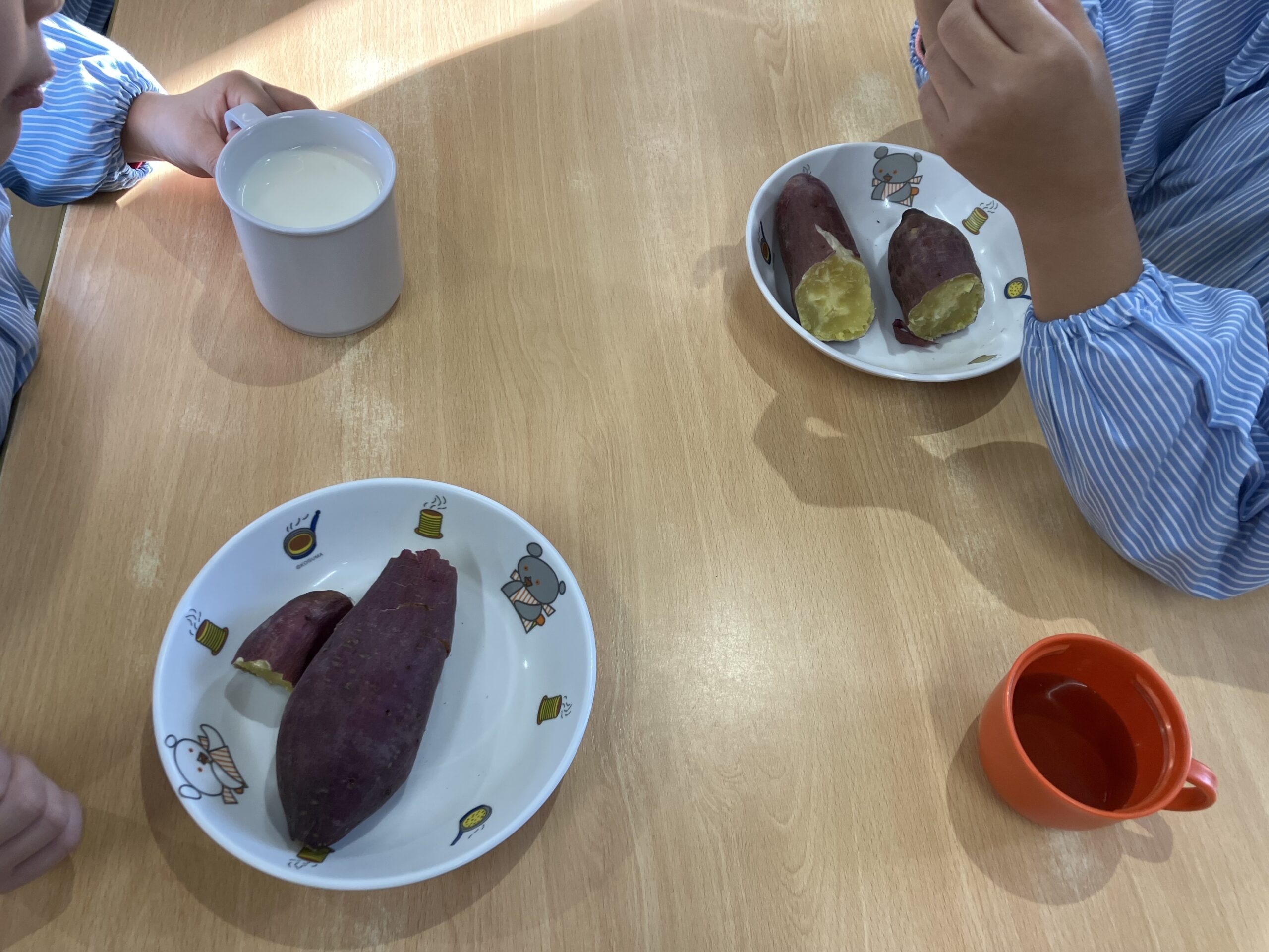 ぞう・くまぐみさんは、やきいもを作っておやつで食べました。
