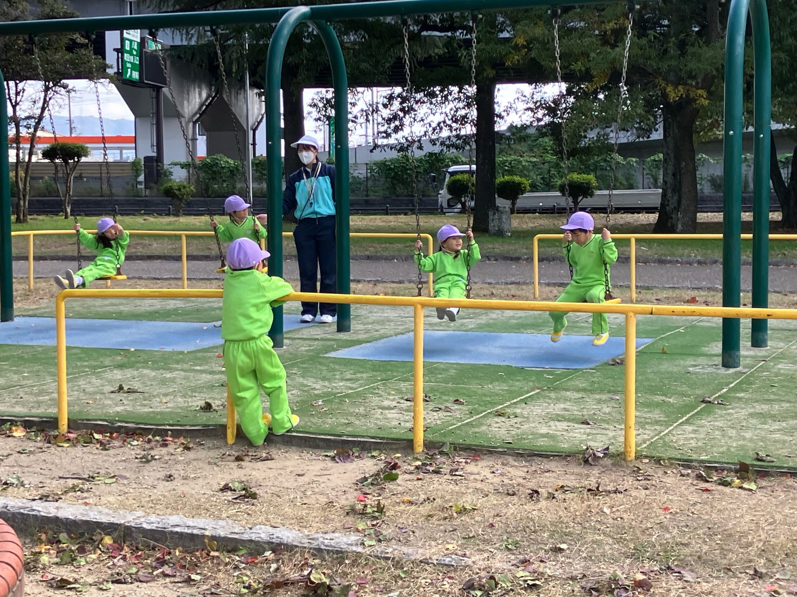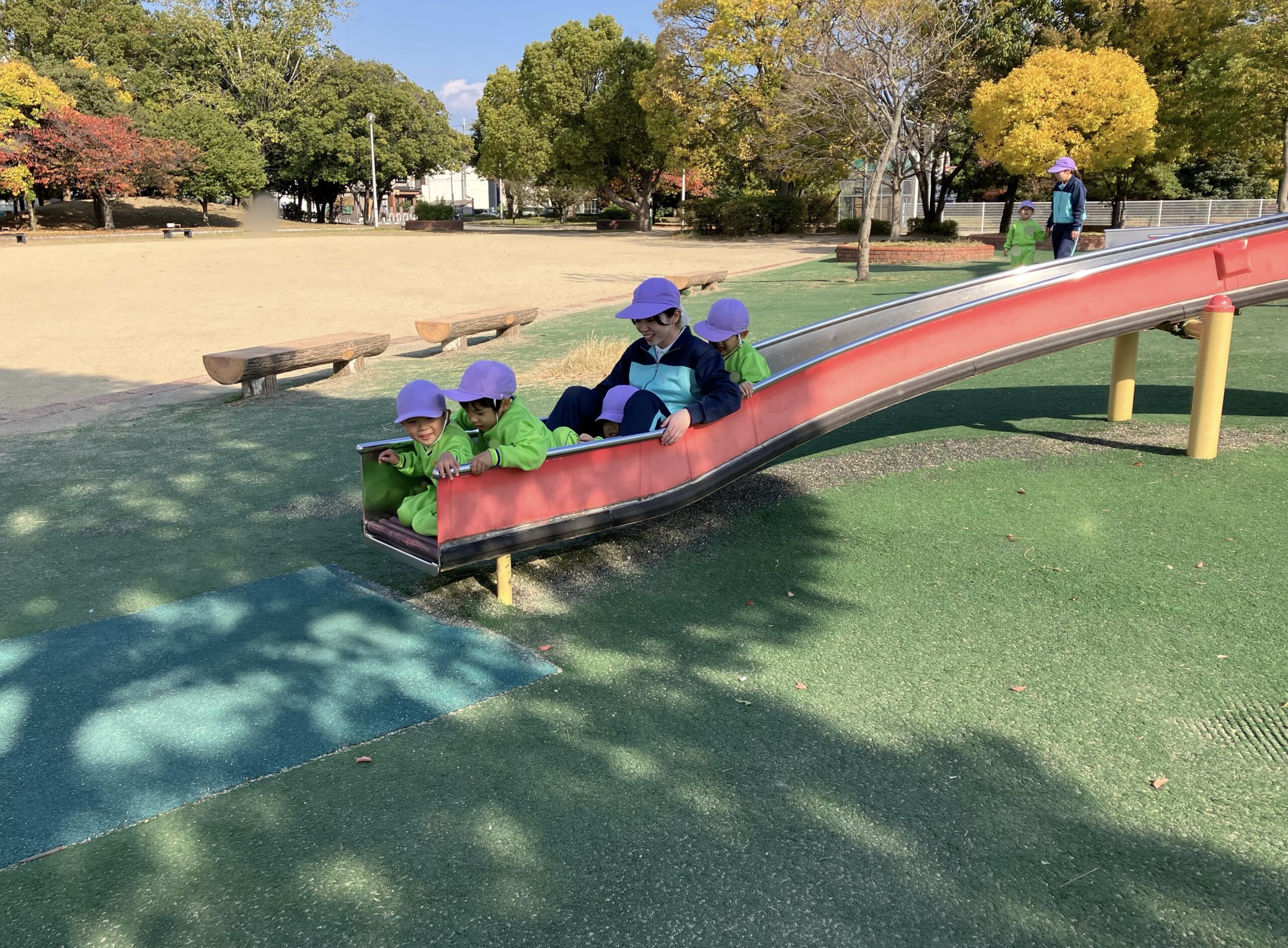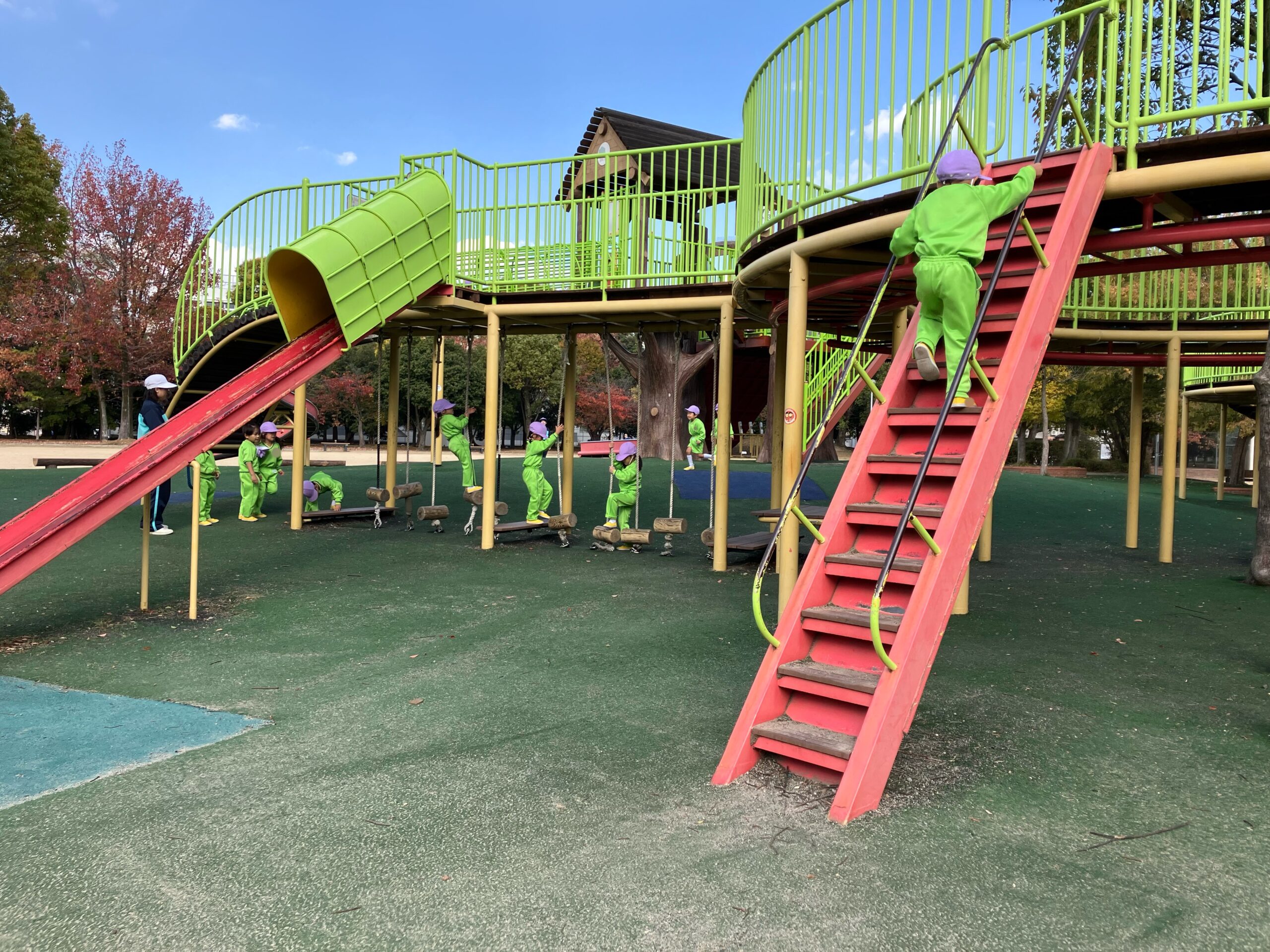 くまぐみさんは、楽しみにしていた遠足で久宝寺緑地公園へ行きました。お天気にも恵まれ、大きな遊具で思う存分遊ぶことができました。