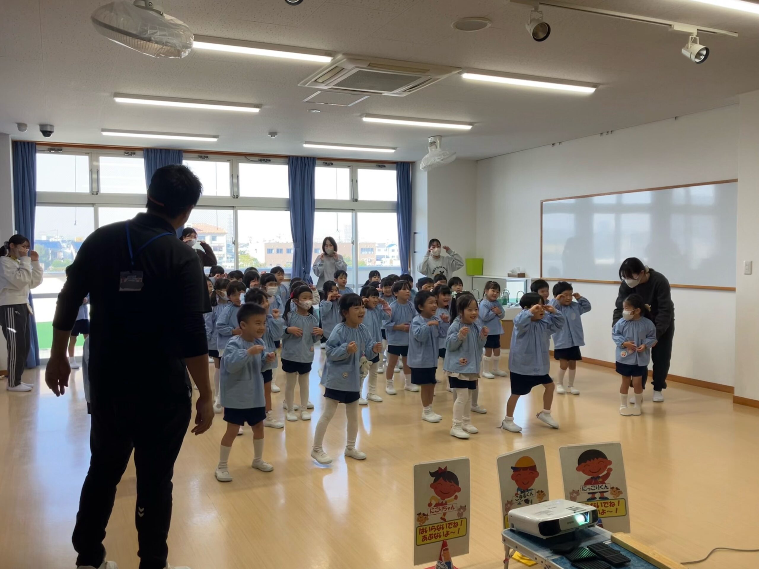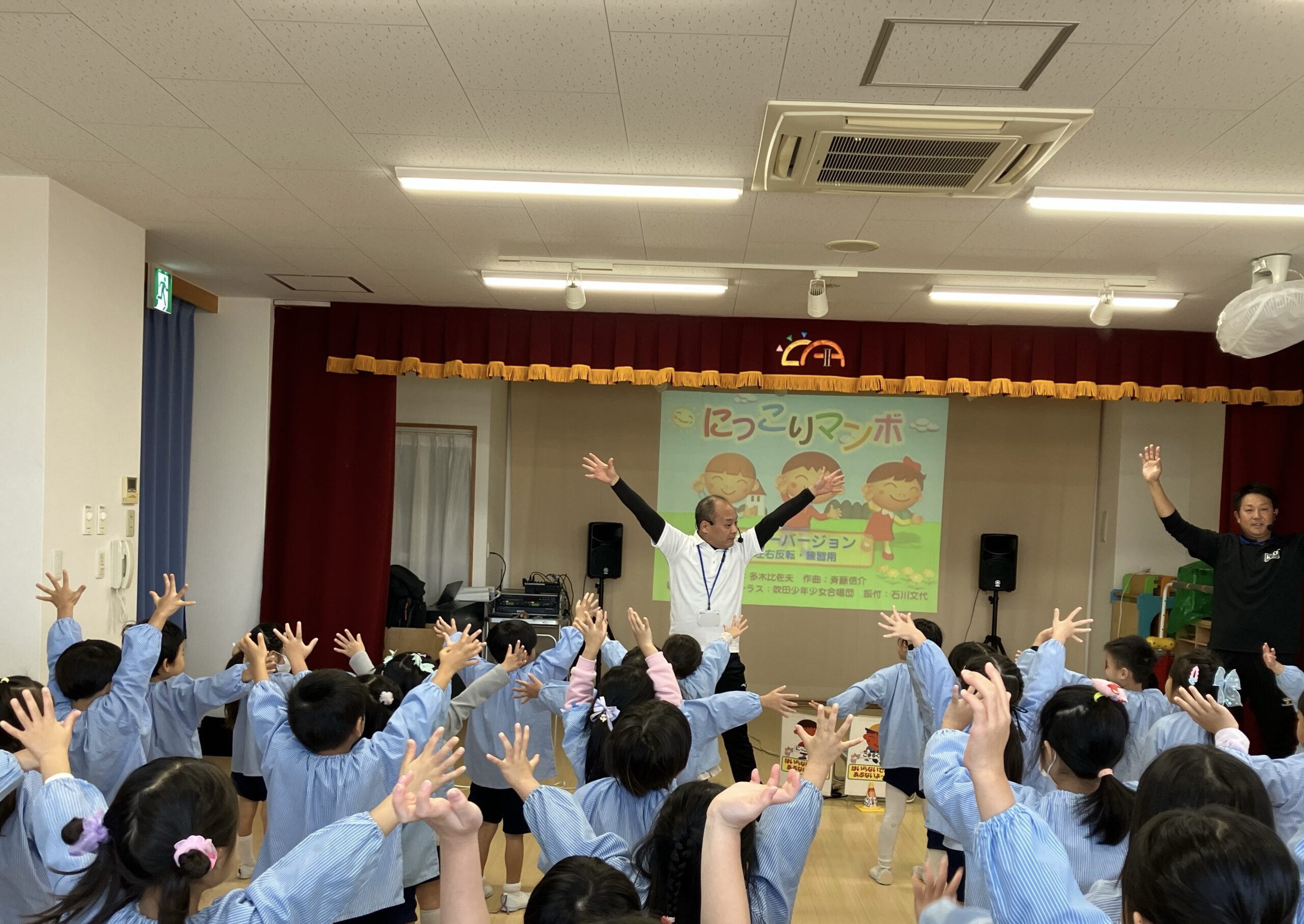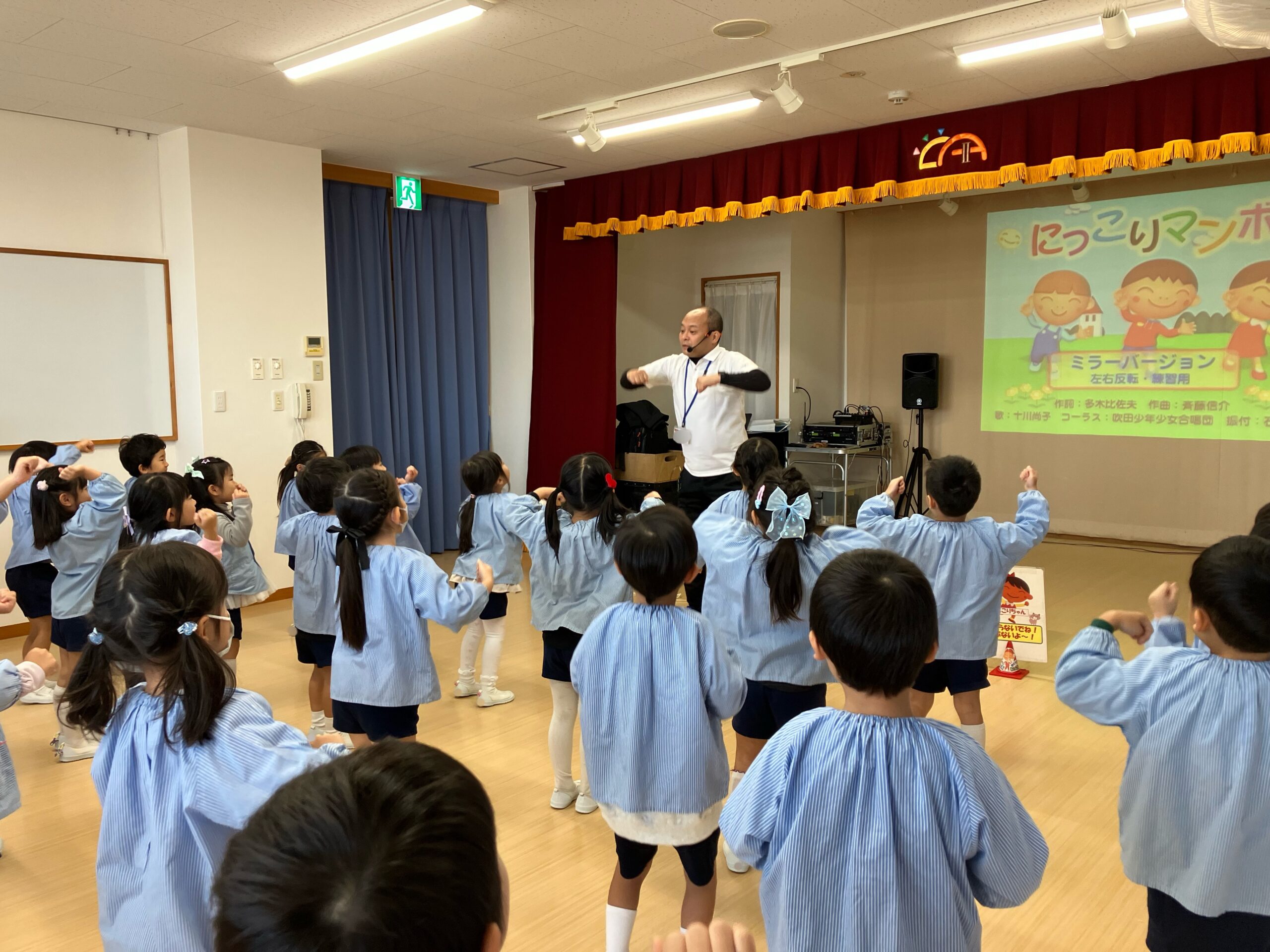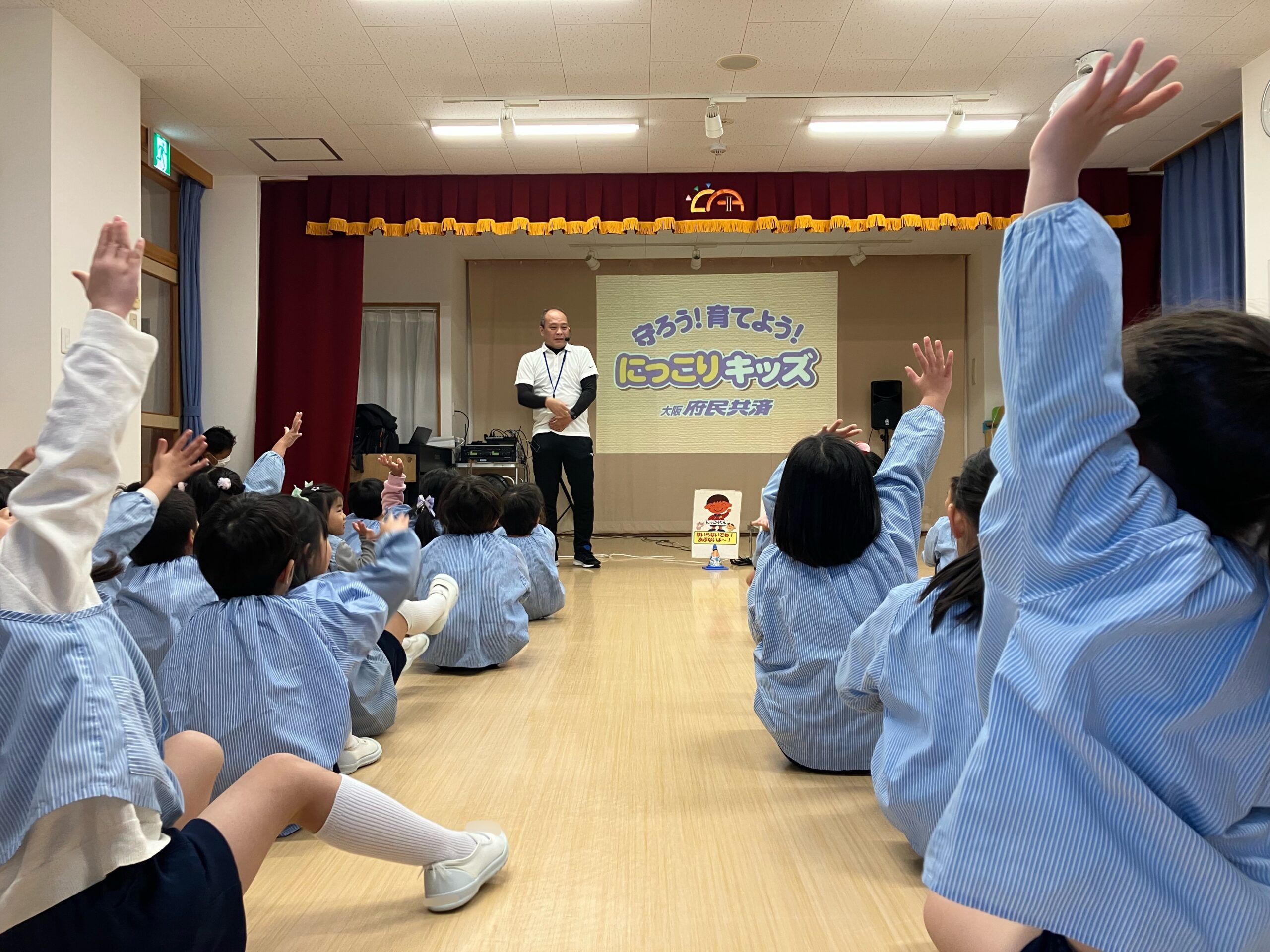 また、府民共済のにっこりキッズキャラバンの方が来て下さり、一緒に体操をしたり、たくさん身体を動かしました。