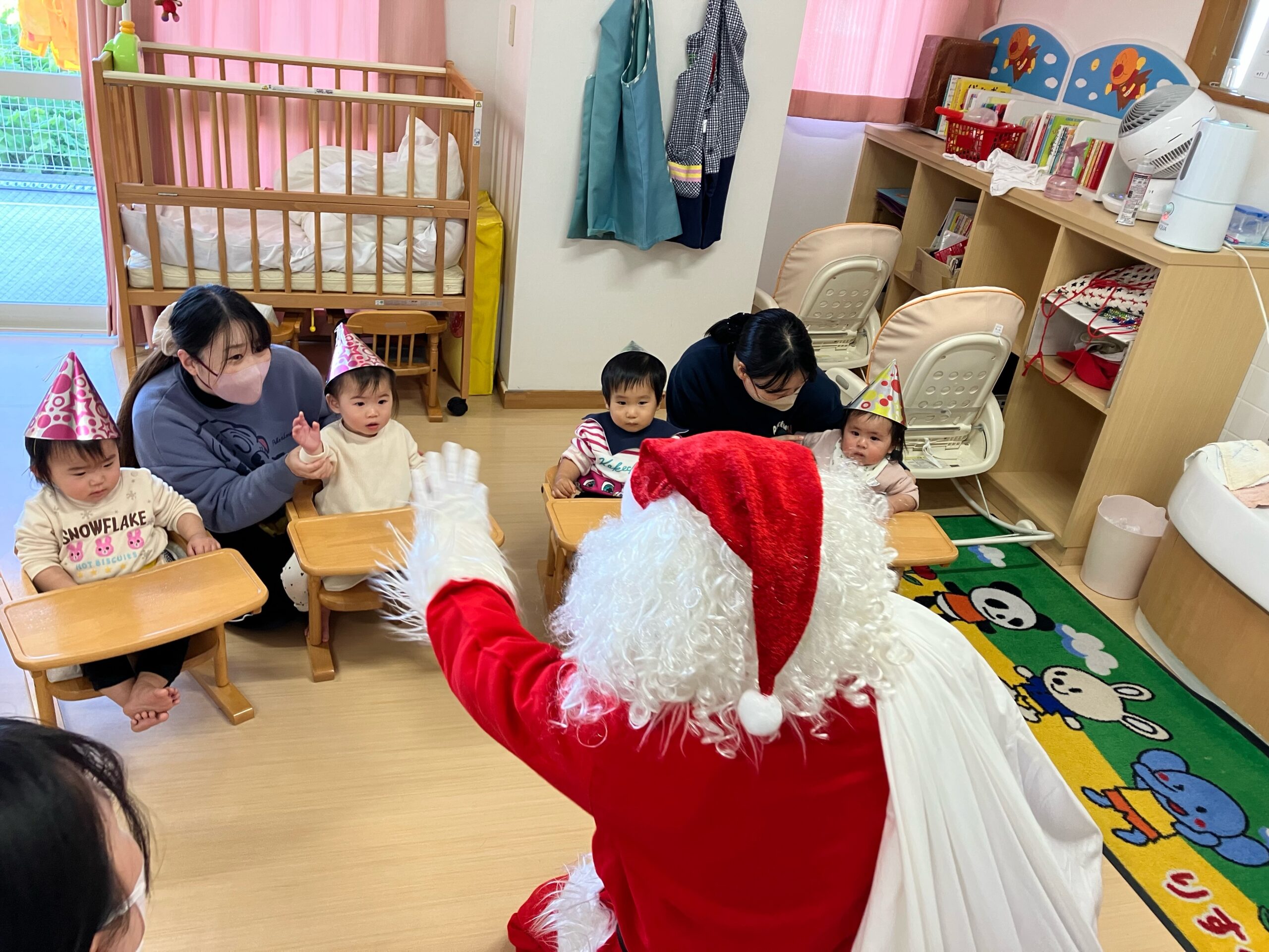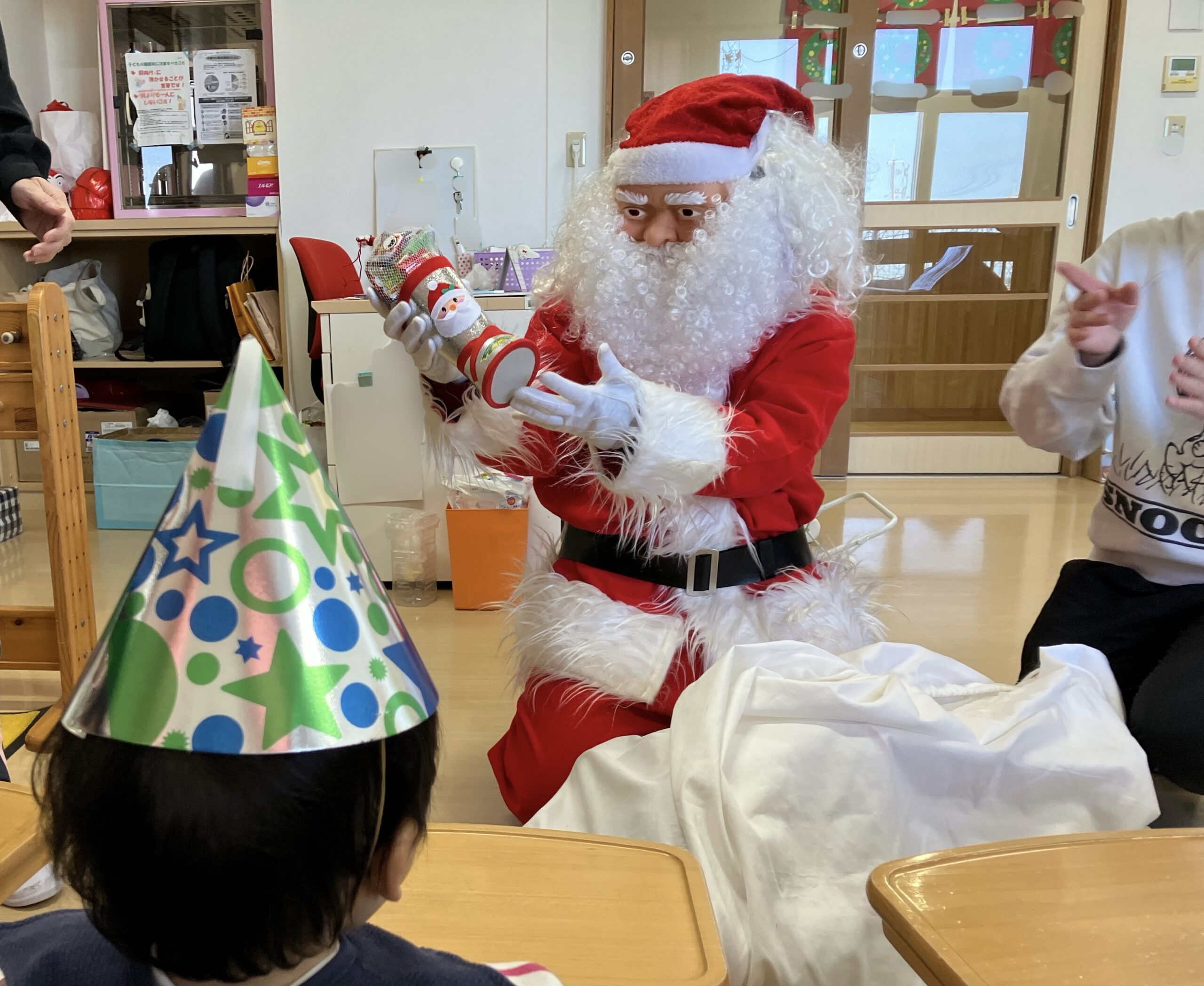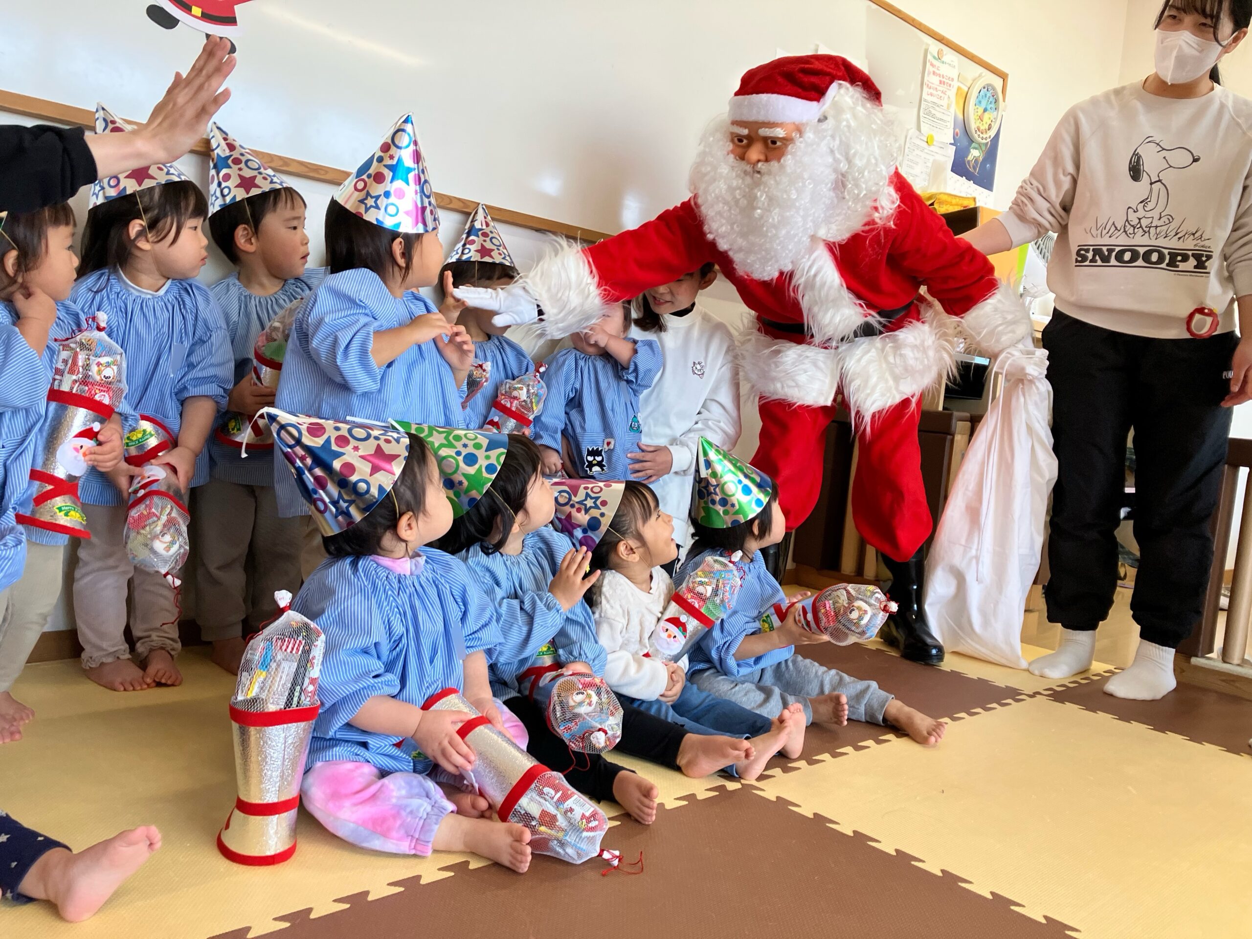 びっくりして泣いてしまうお友達もいましたが、お菓子のプレゼントは嬉しそうに受け取っていましたよ♪