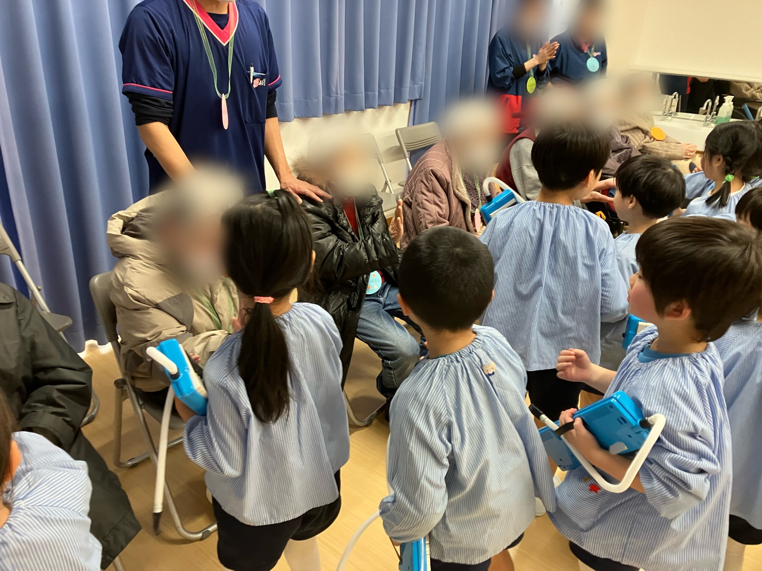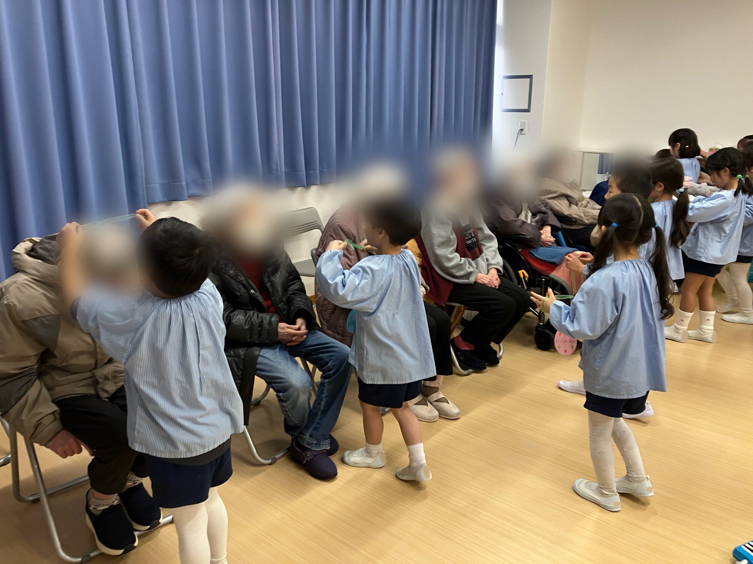 ぞう・くまぐみさんは、高齢者施設『あぷり』さんの利用者の方達に、歌と合奏は披露しました。