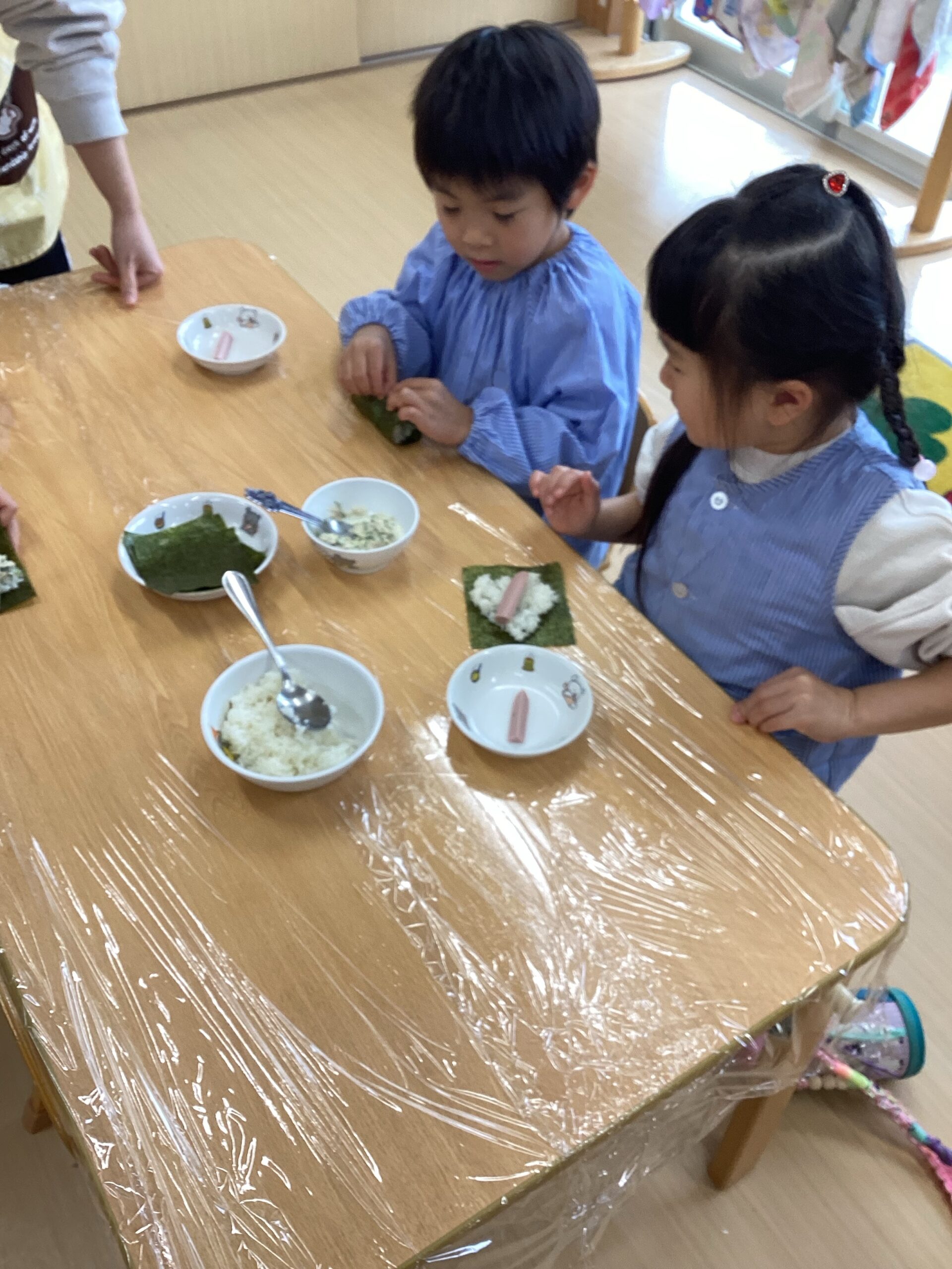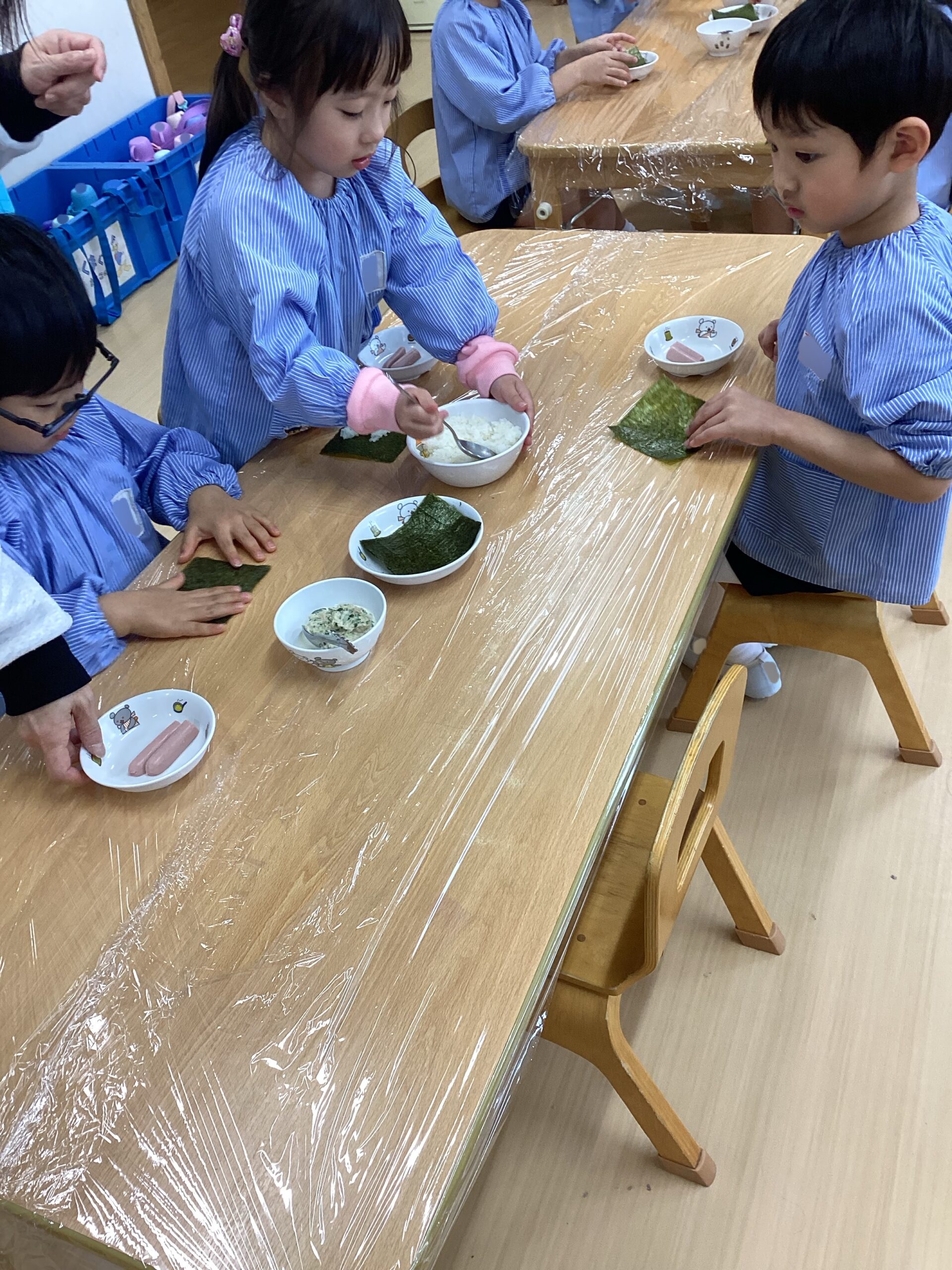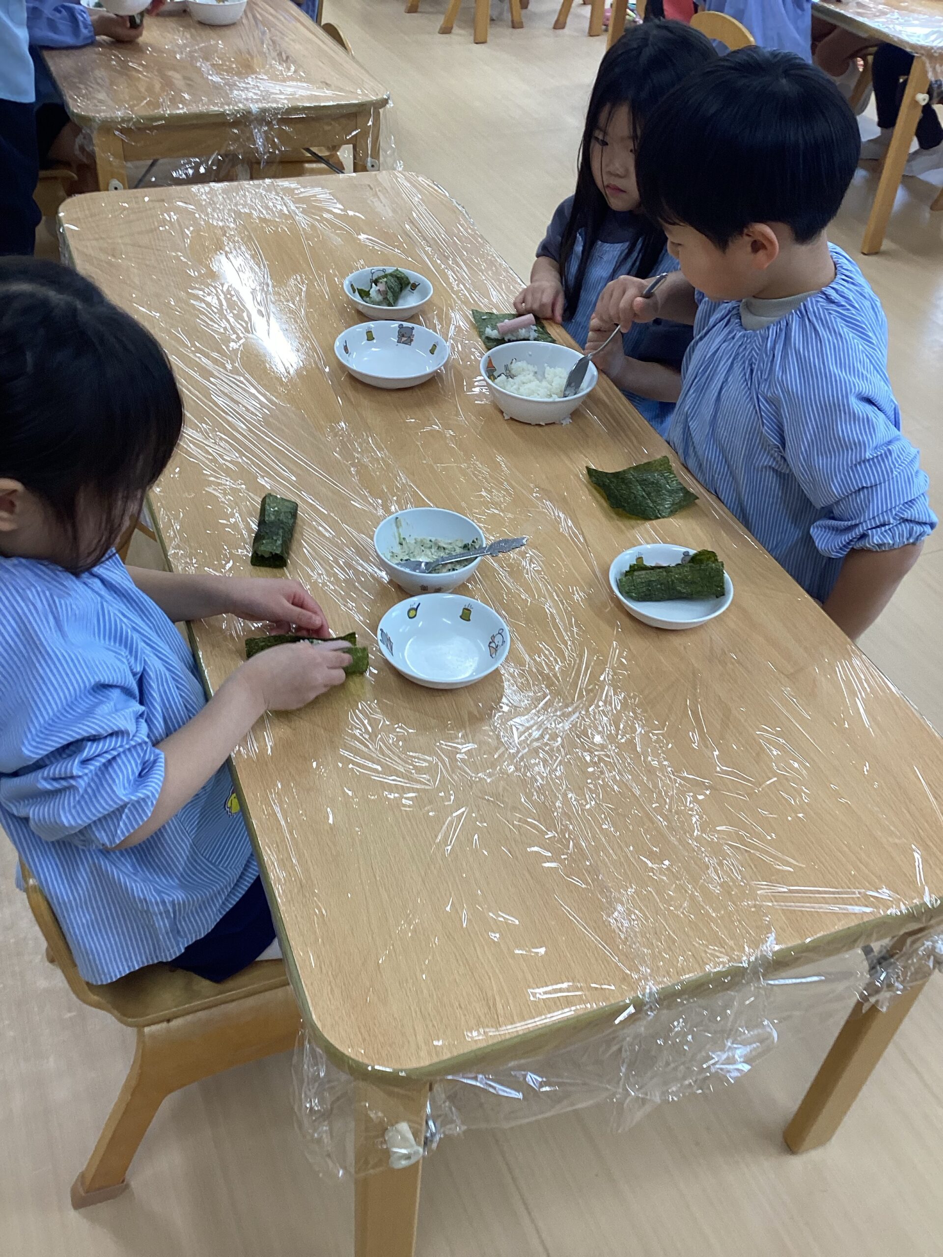 ぞう・くま・ぱんだぐみさんは、食育で“手巻き寿司“を作りました。