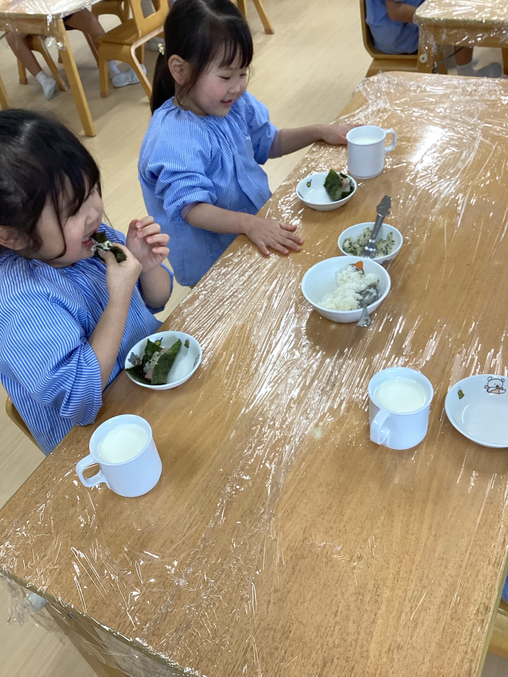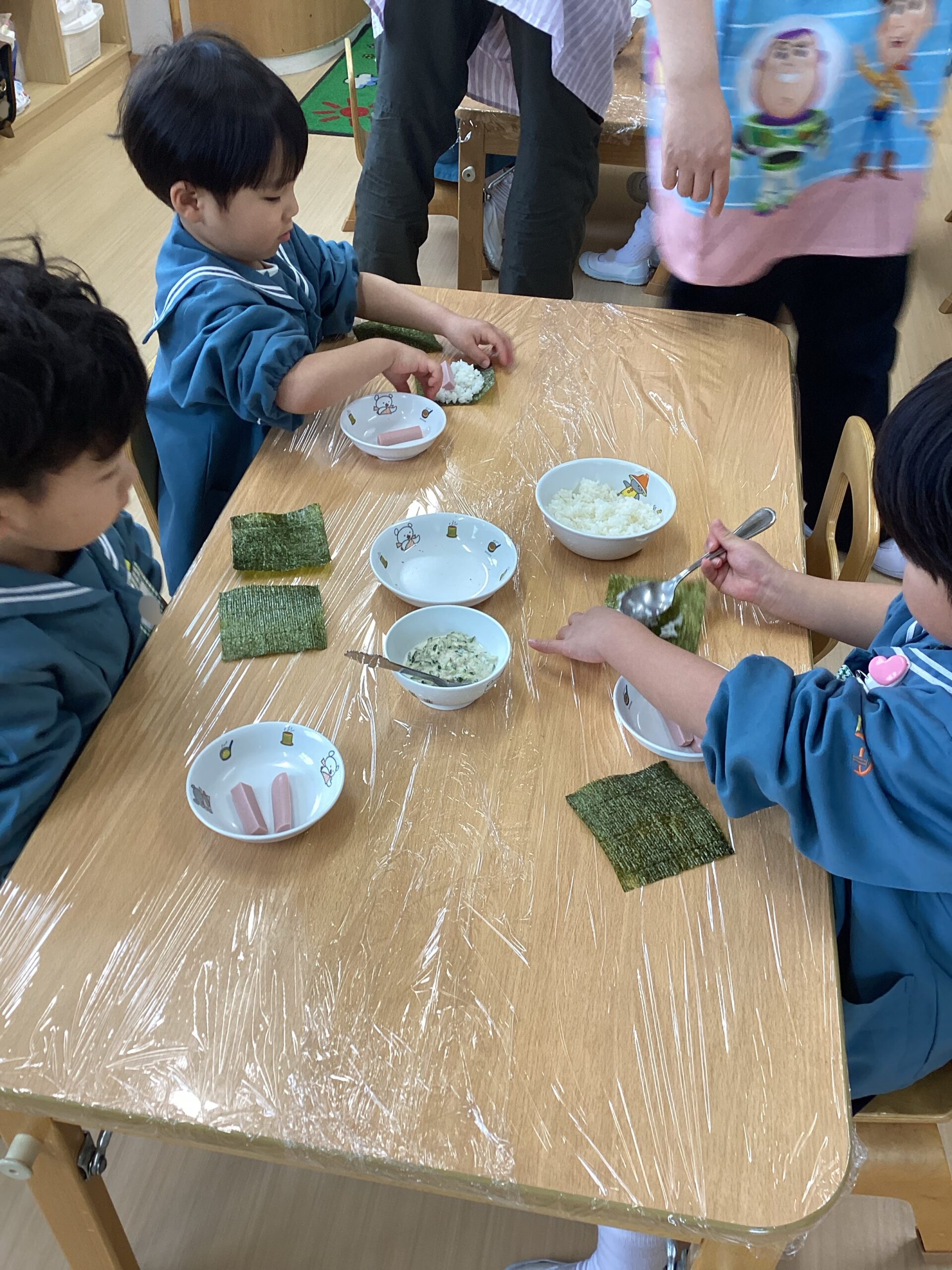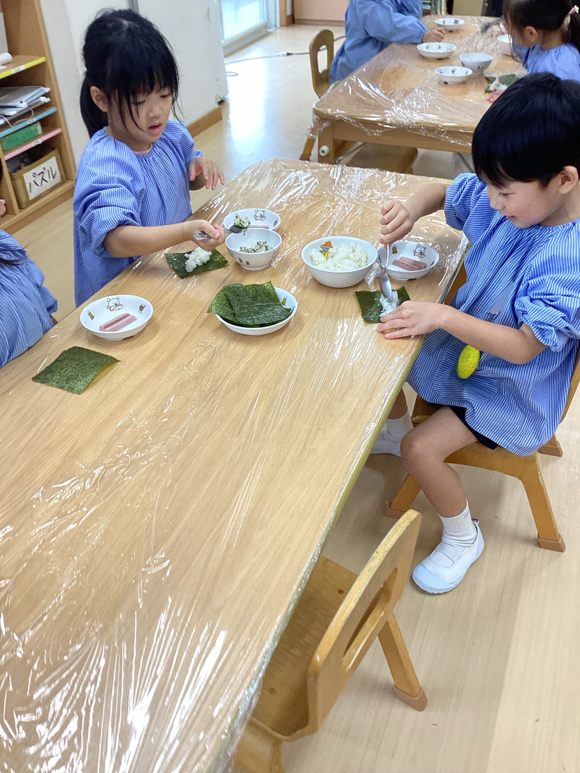 ぞう・くま・ぱんだぐみさんは、食育で“手巻き寿司“を作りました。