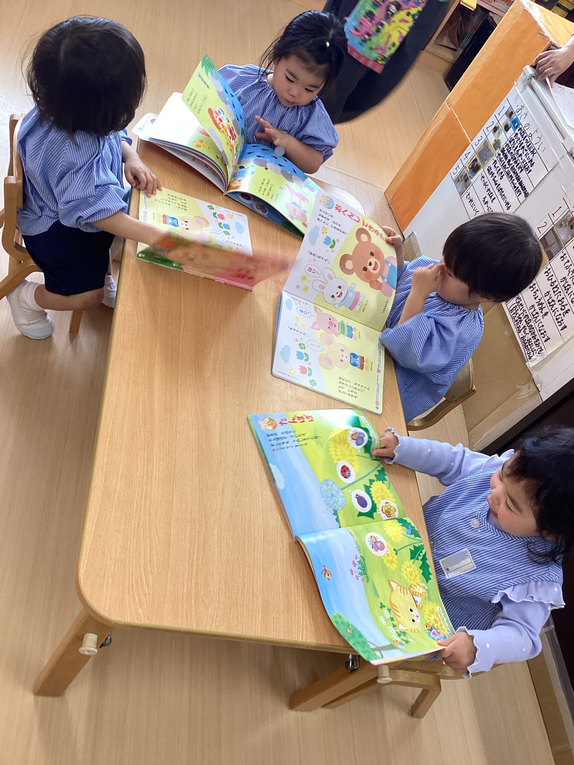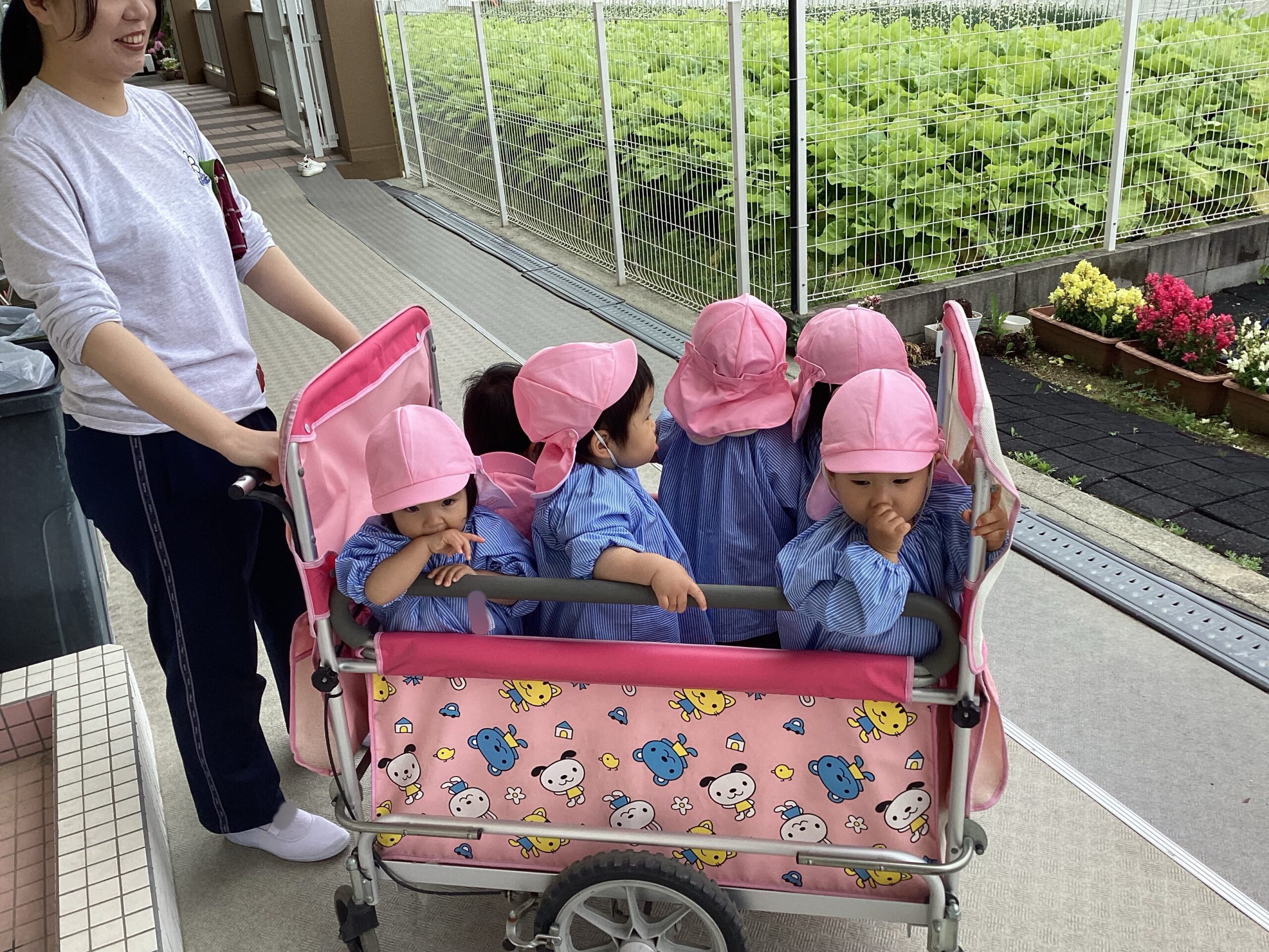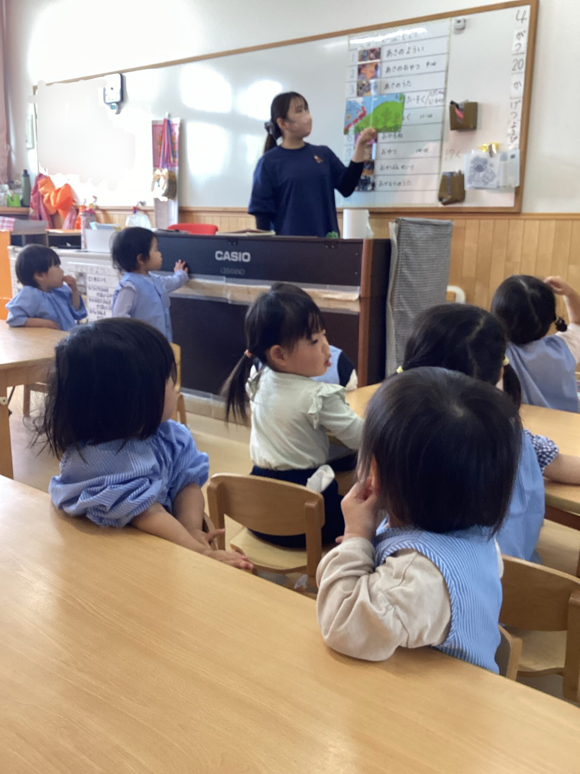 うさぎぐみさんは、新しい環境に慣れ、みんなでお歌を歌ったり、先生に絵本を読んでもらったり、お散歩へ行ったり…。笑顔がいっぱい見られるようになりました。