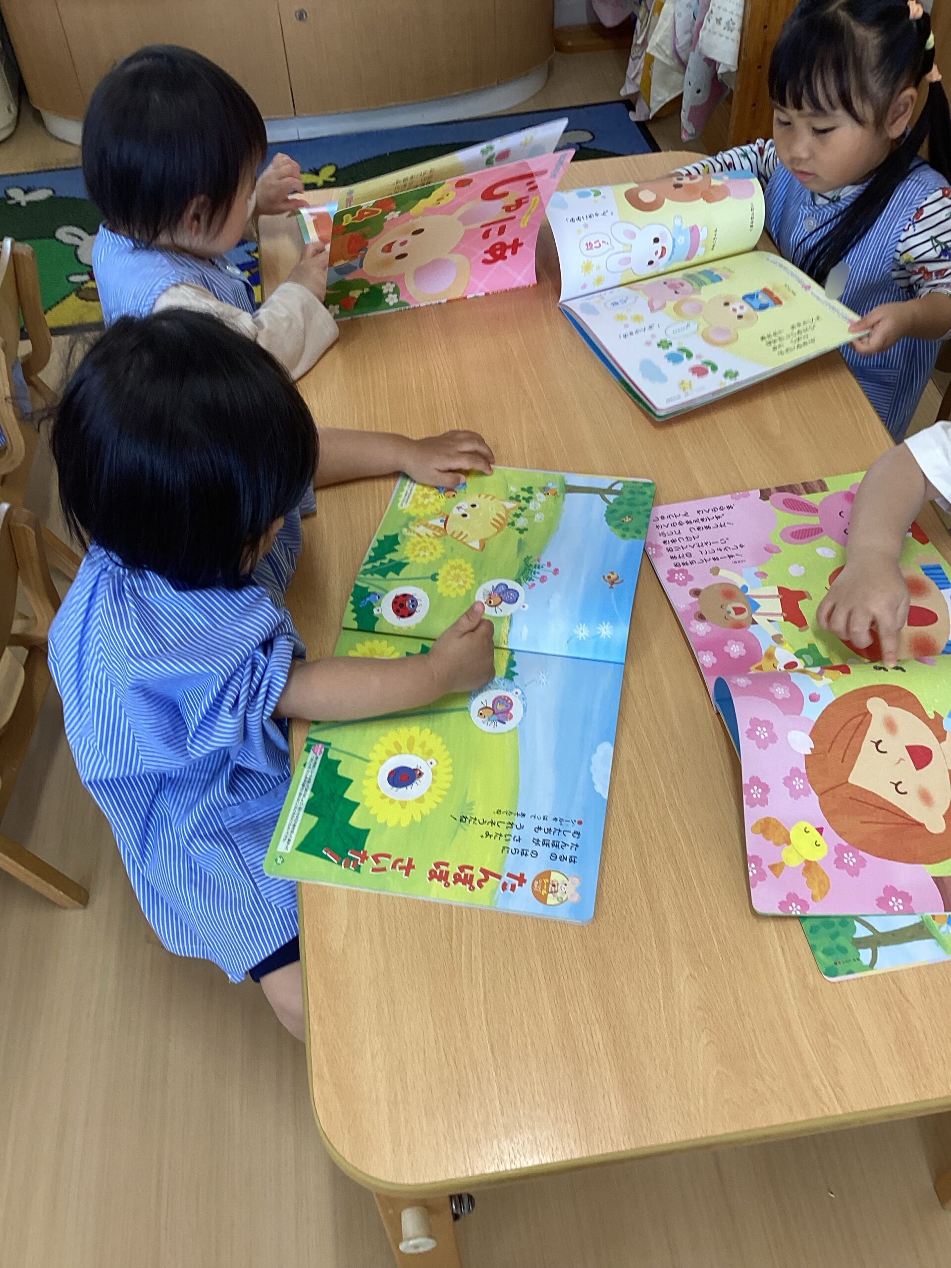 こあらぐみさんは、先生と一緒にたくさんの新しいことに挑戦しています。月刊誌のシール貼りでは、先生のおはなしをよく聞いて上手に出来ました。